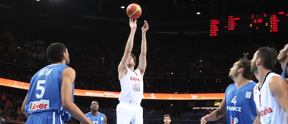 1857: Starters – Spain: Calderon, Navarro, Fernandez, Marc and Pau Gasol. France: Parker, Pietrus, Diaw, Batum, Noah