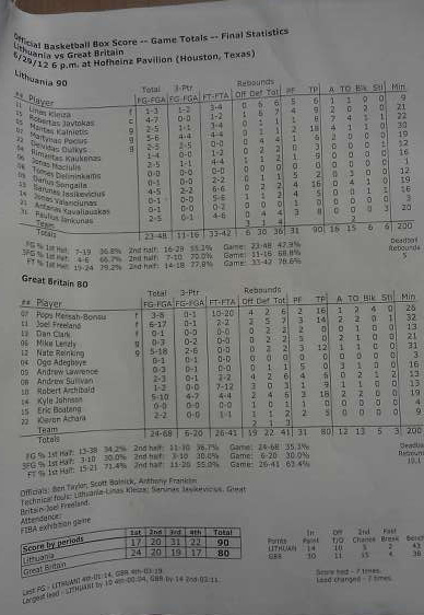 Kyle Johnson led GB with 18 points on 5/10 shooting, Pops Mensah-Bonsu had 16 points, 6 rebounds and 4 blocks but went 10/20 at the line, and Joel Freeland added 14 points and 7 boards. Lithuania were led by 18 points from Martynas Pocius and 16 from Sarunas Jasikevicius.