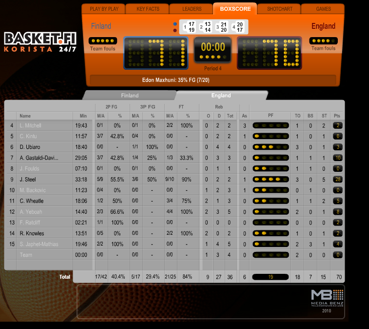 Despite holding a 7 point lead with 1 minute 30 seconds remaining, Finland capitalised off a crucial turnover and missed shots from England to get back in the game. Josh Steel (pictured, above), who finished with 28 points to once against lead England, missed a three pointer at the buzzer as Finland stole the game.