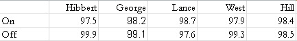 The pacers have been so spry on defense this season that they are the only team in the league who’s whole starting five ranks in the top 20 defensive rating. In view of this, crowning one player above the others seems a little unfair, so let’s compare Hibbert’s on/off court defensive rating numbers to the other four starters (Basketball Ref)