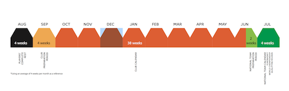 3. National Team calendar should occupy four weeks per season, in addition to a two week preparation period